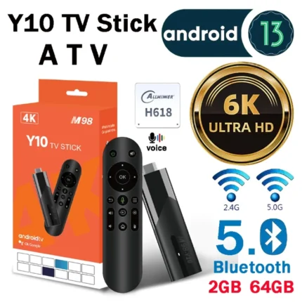 Y10 ATV Mini TV Stick Android 13 Allwinner H618 Quad Core 6K HDR10+ 3D 2.4G&5.8G WIFI BT 5.0 USB 2.0 Voice remote Smart TV BOX